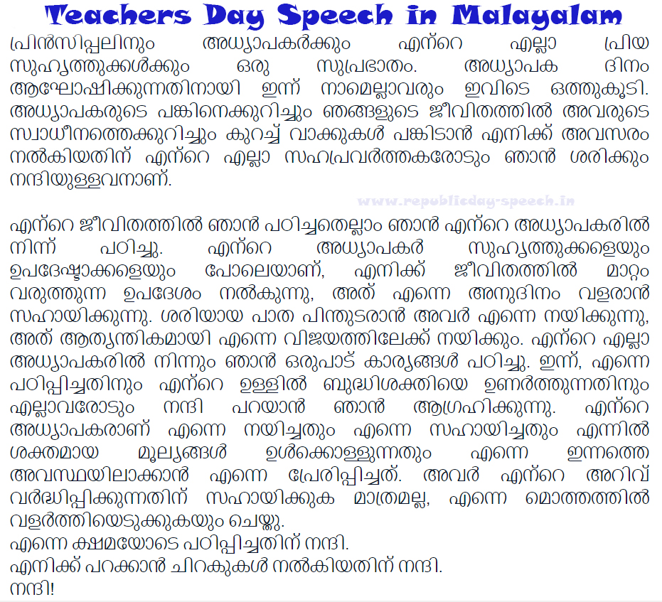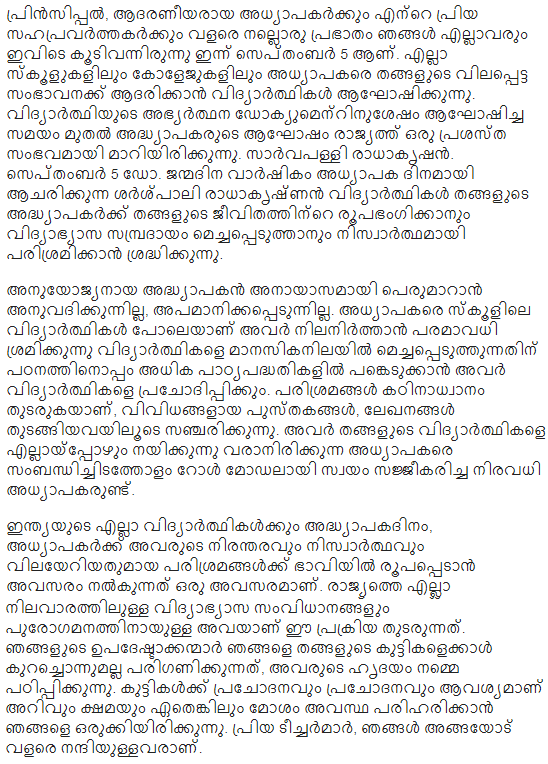 The best way to start writing an essay in malayalam is to find numerous interesting topics. • click here for short paragraphs & articles on teacher's day. Teacher's day speech in english. In the time of 1962 when he was handling his responsibilities towards the nation, his students requested him to teachers day essay in english 2: